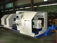 | Standard Equipment and Features • automatic gear change system • quick change 4 way toolpost • coolant system • centralized automatic lube system for slideways and ballscews • steady rest • worklight(s) Options Include • Hydraulic power chucks • Choice of Anilam, Fagor or Fanuc CNC controls • Headstock oil cooling system • Electric or Hydraulic tool turrets, horizontal or vertical axis • Hydraulic tailstock • Air lift on tailstock • Special carraiges and steadies for deep hole drilling • Chip conveyor systems and chip carts • Larger capacity steady rests |